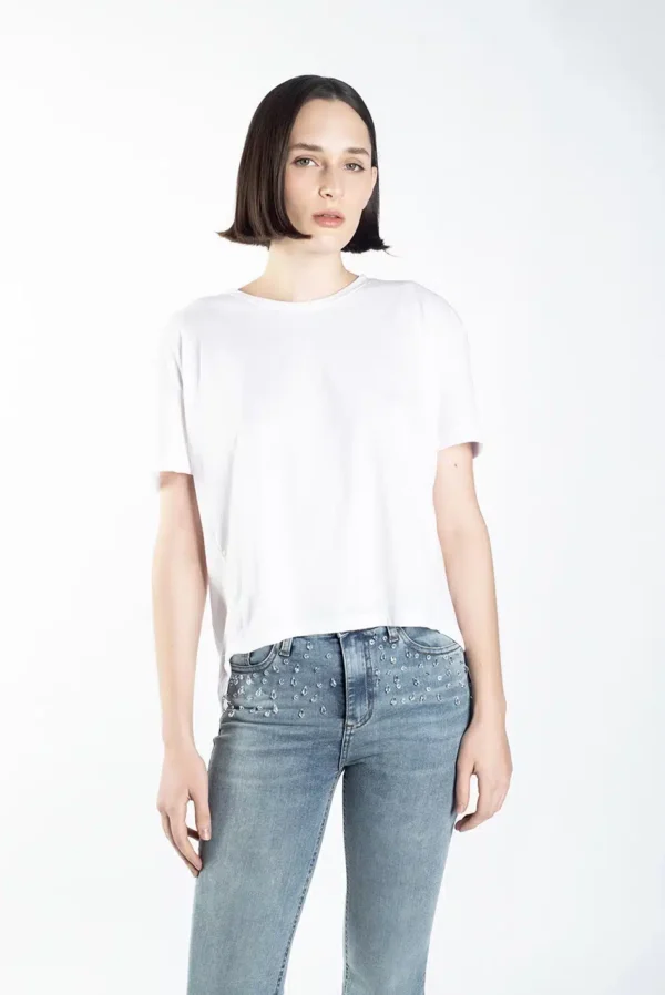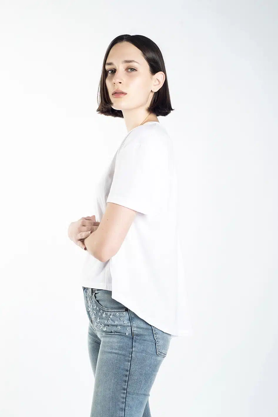 Remera calce regular, manga corta y cuello redondo, confeccionada en 100% algodón peruano pima.