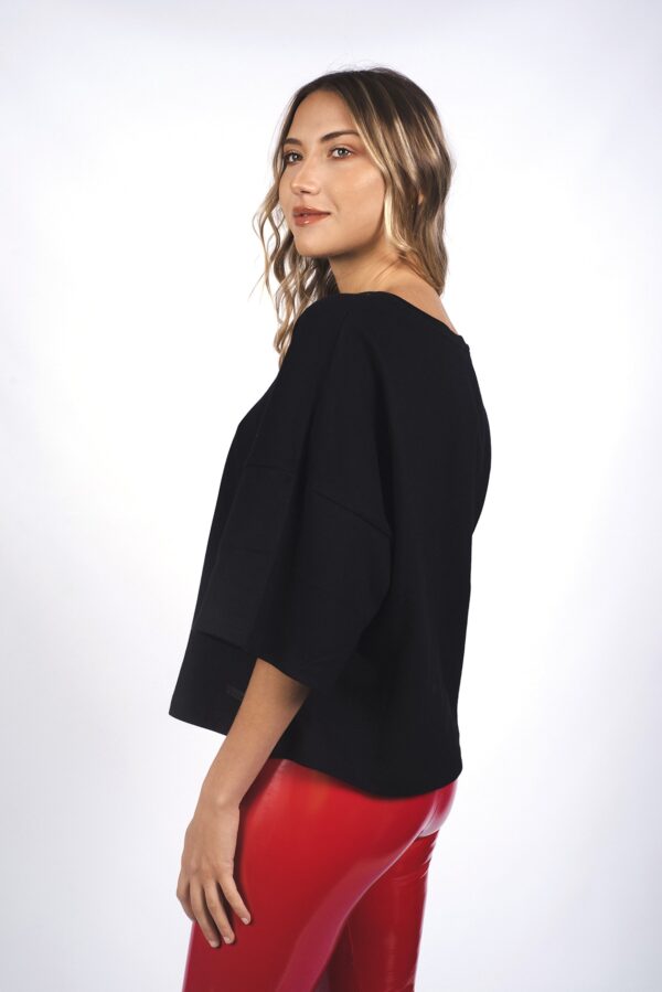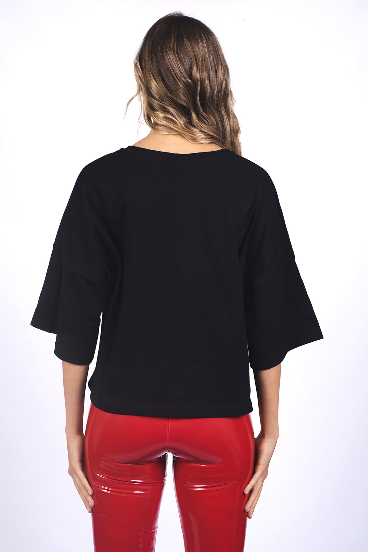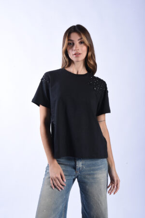 Remera cuello redondo y manga corta, confeccionada en 100% algodón color negra.