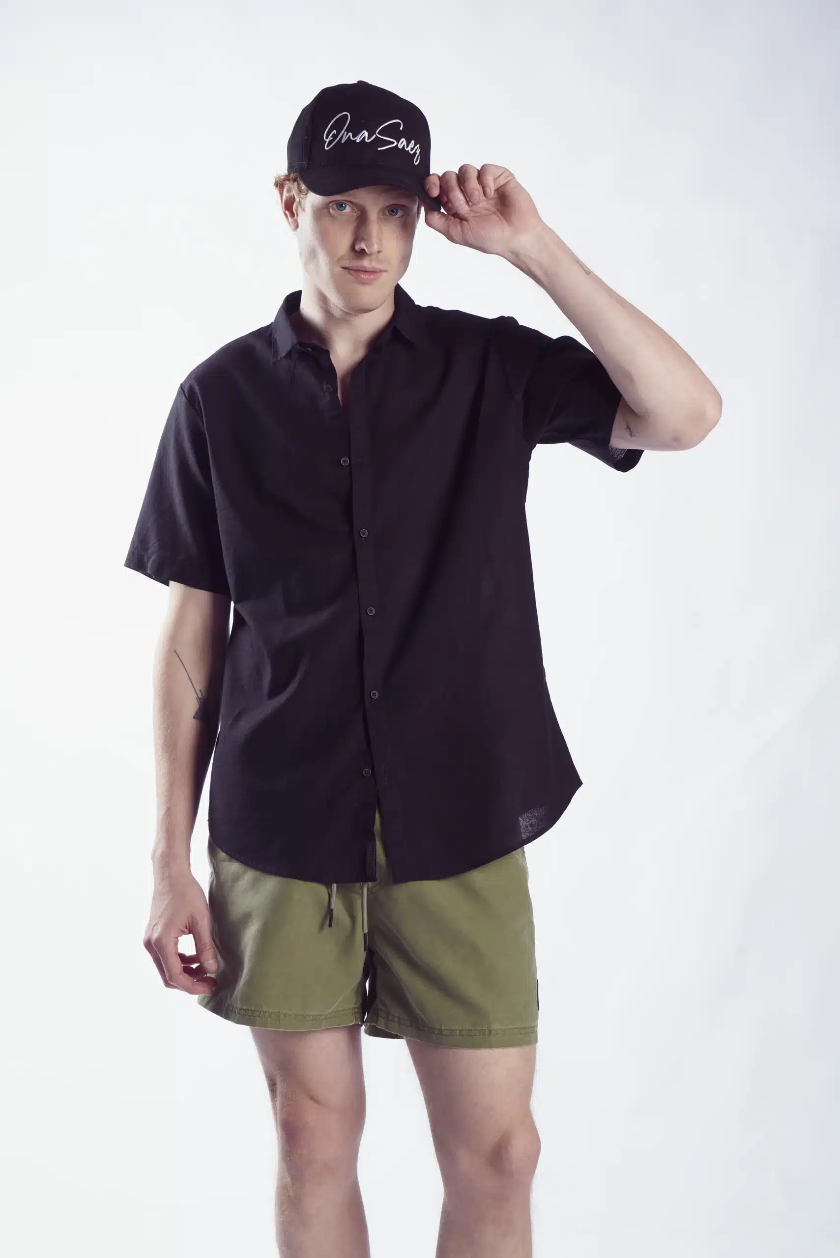 Short tiro medio confeccionado microfibra 100% , color verde, con procesos de lavado acid wash.
