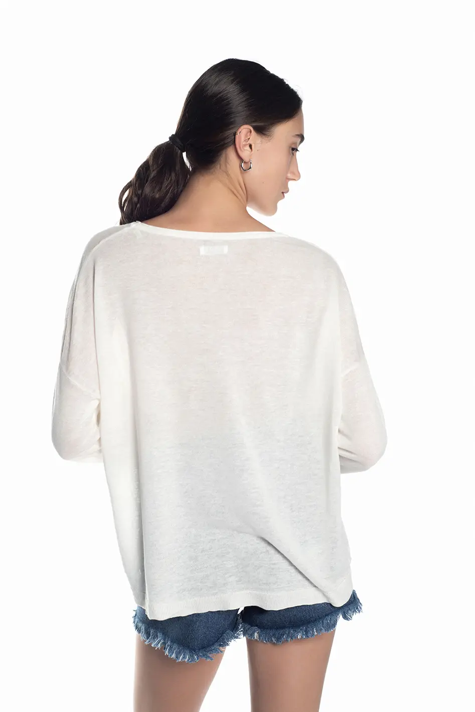 Sweater cuello redondo y manga larga, confeccionado en tejido de punto suave y ligero, ideal para usar en esta época del año.