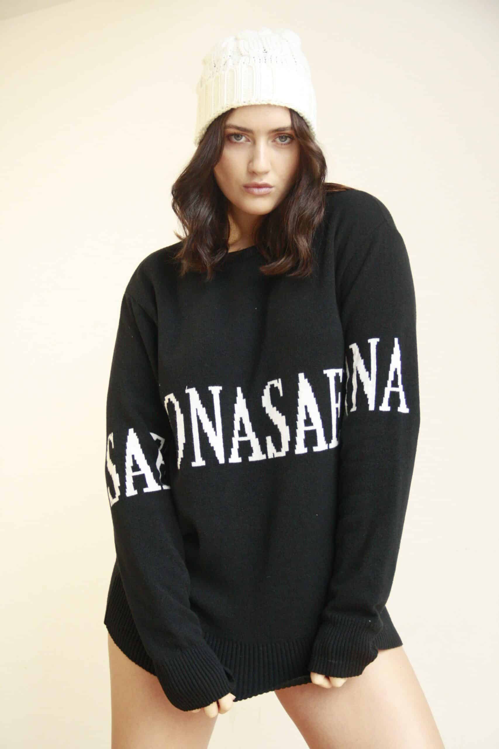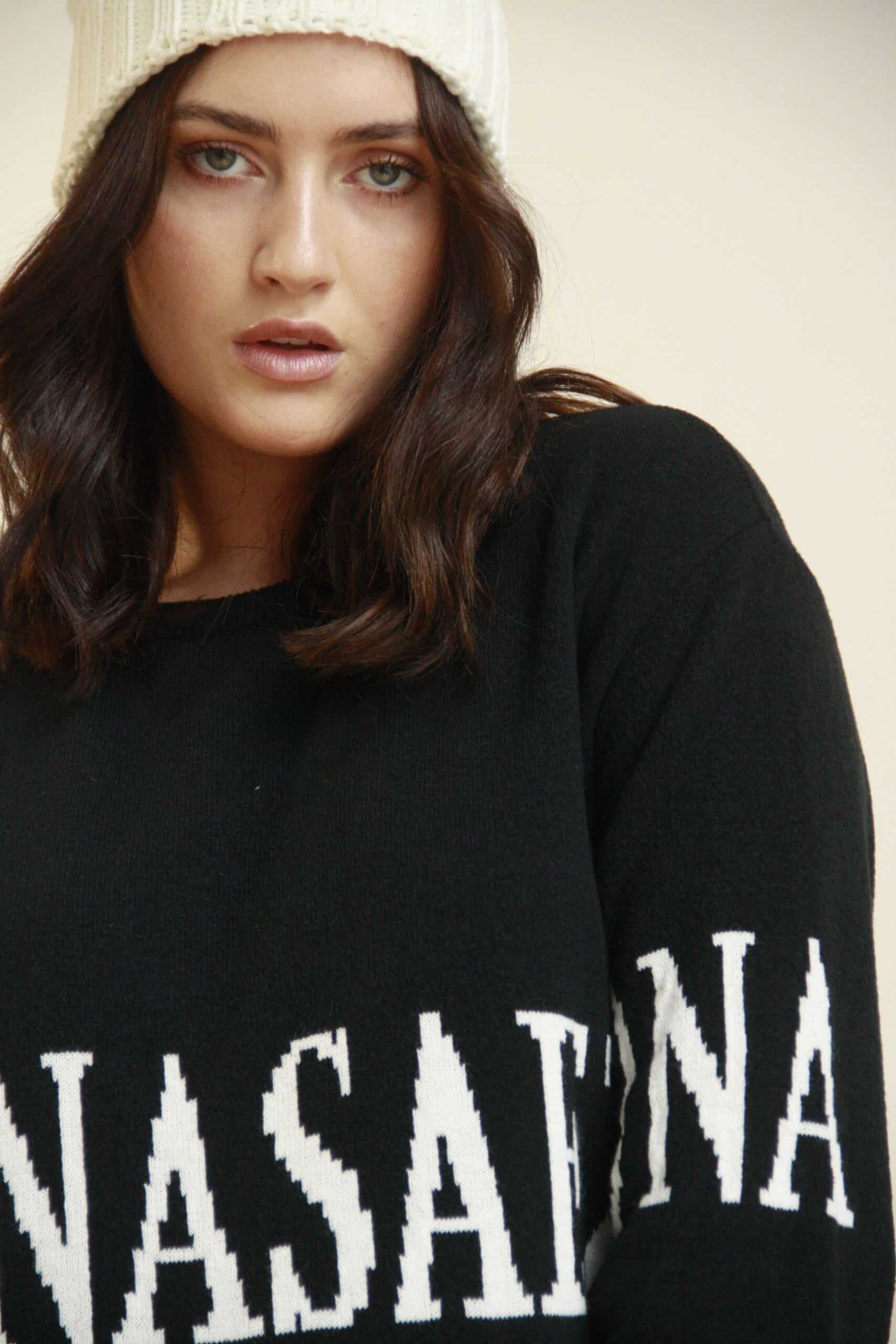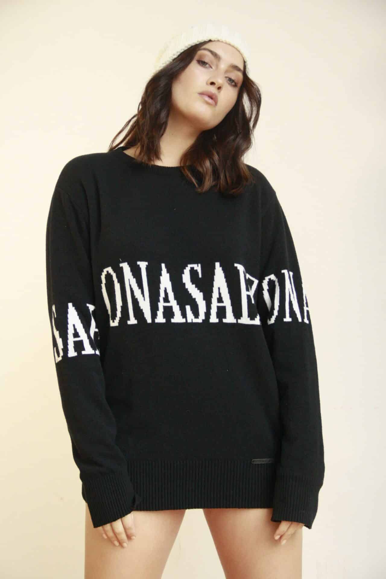 Sweater cuello redondo y manga larga confeccionado en jacquard, con presencia de logo en el frente y mangas.