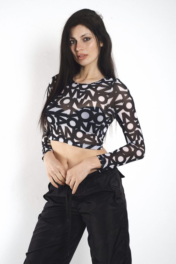 Top semitransparente manga larga y cuello redondo, confeccionado en tul con lycra,