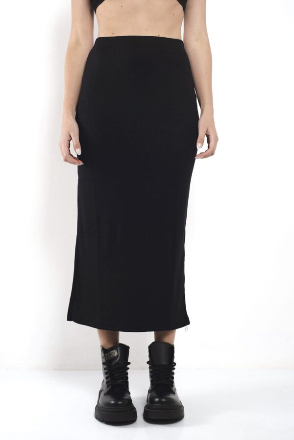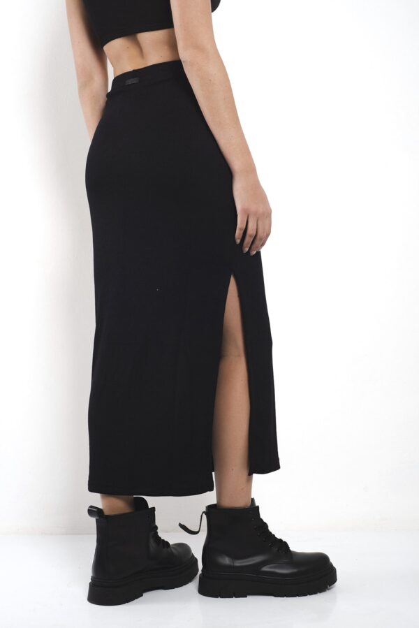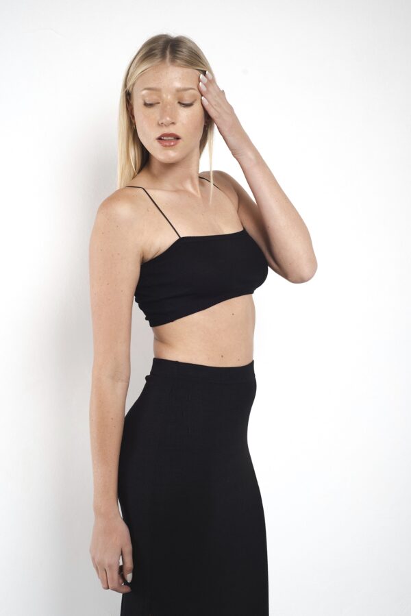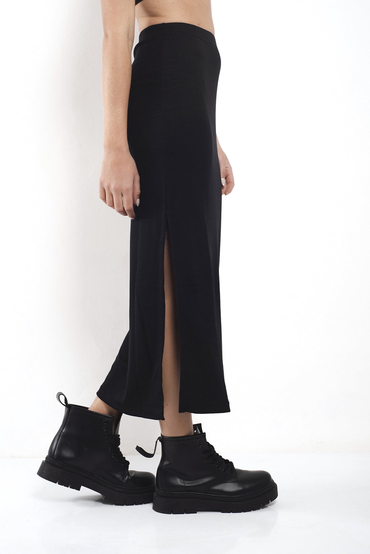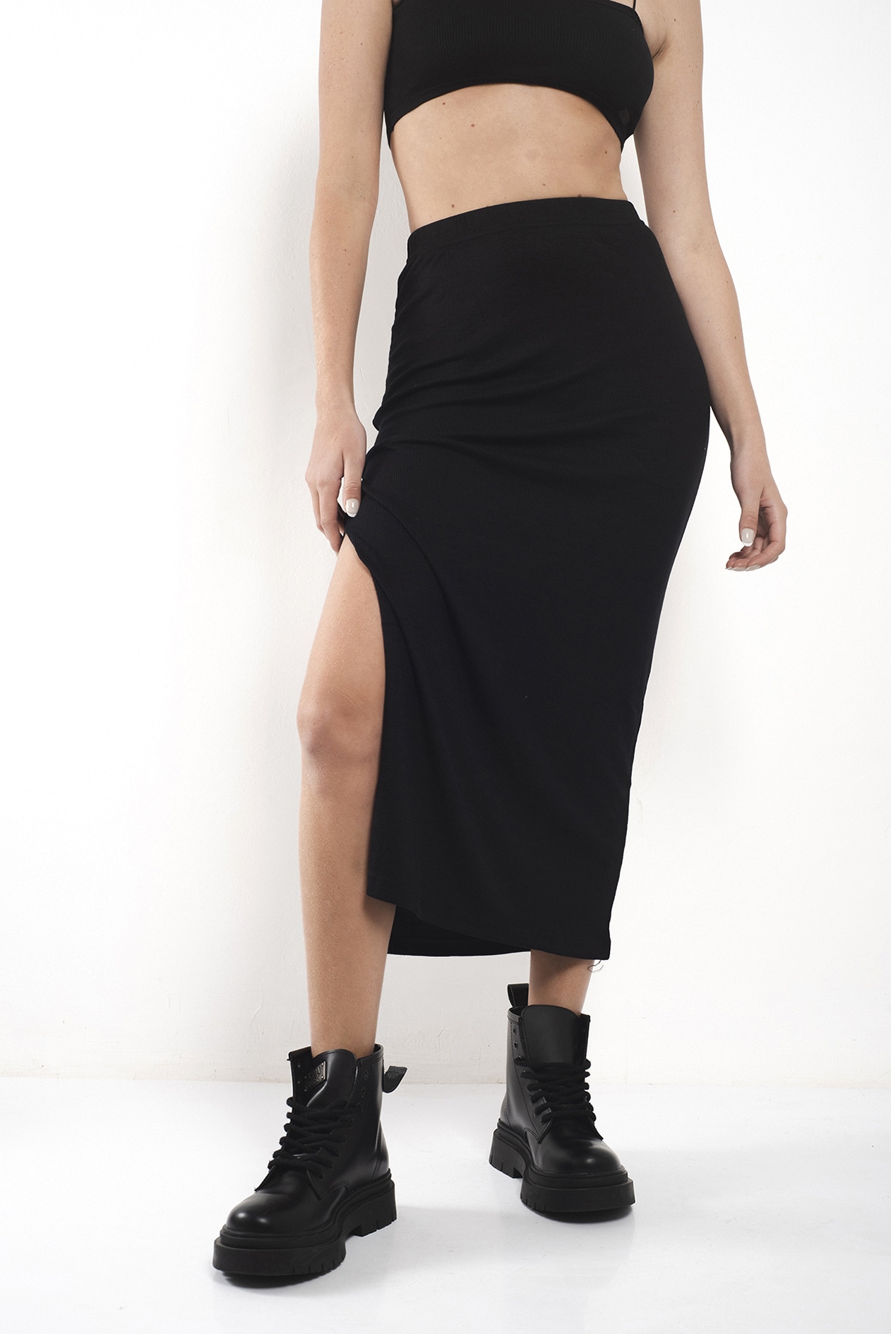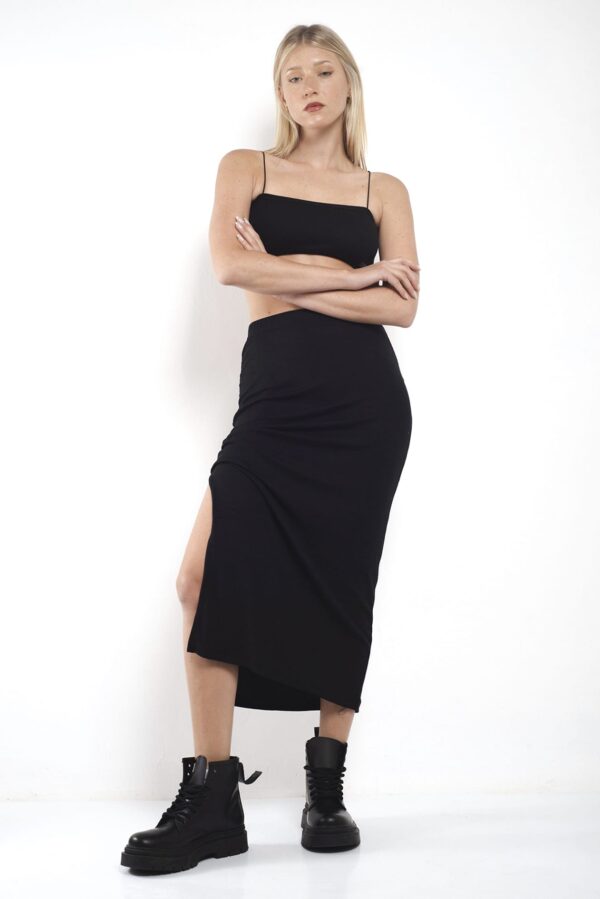 Conjunto combinado de top y falda midi ,confeccionado morley 2 x 2 (70% algodón / 30% viscosa).