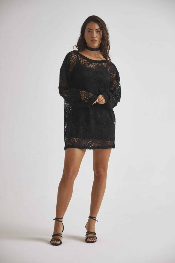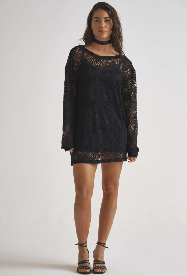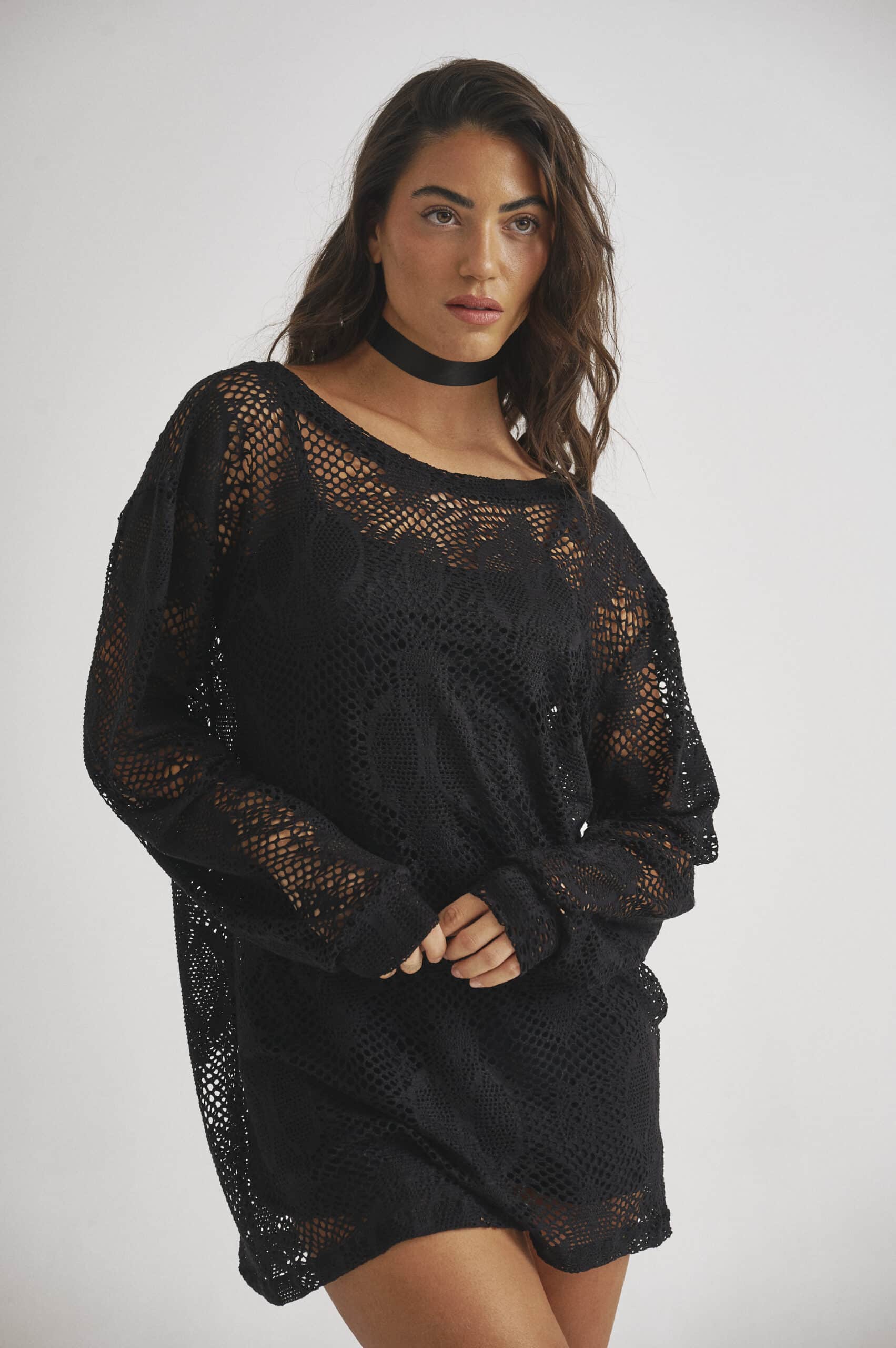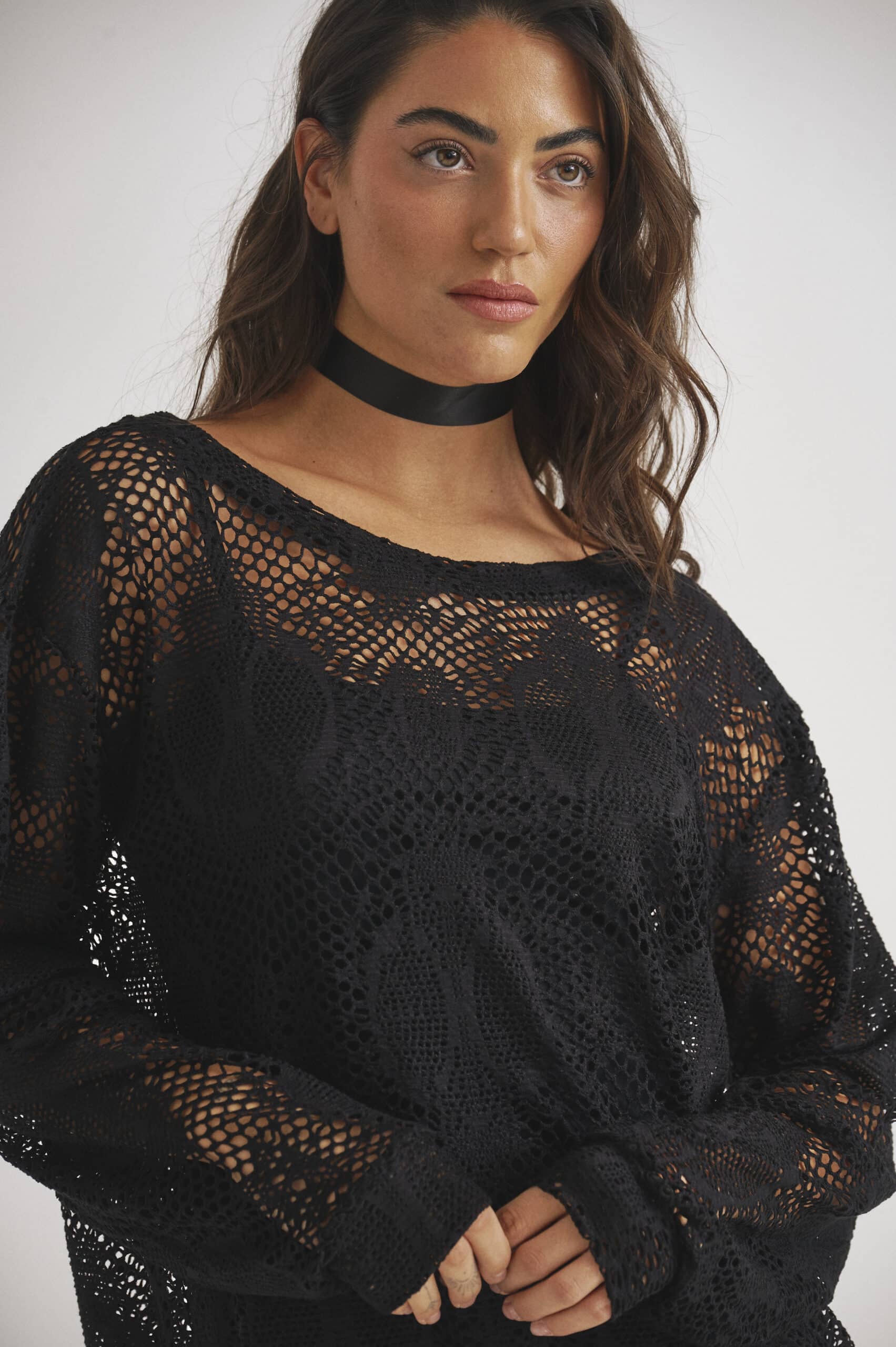 Túnica manga larga confeccionada en jersey calado elastizado.