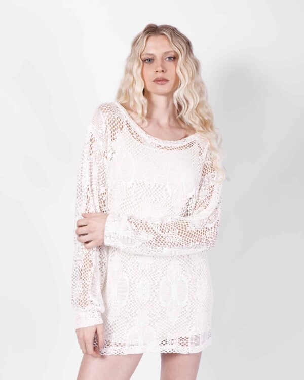 Túnica manga larga confeccionada en jersey calado elastizado.