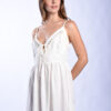 Vestido corto, escote en v, confeccionado en voile de algodón.