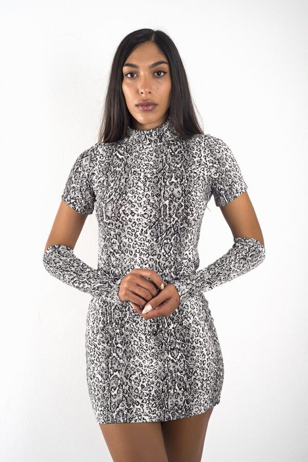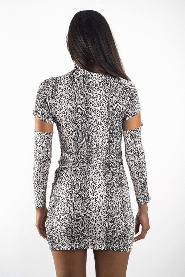 Vestido cuello alto y manga larga desmontable, confeccionado en rib de viscosa con lycra.