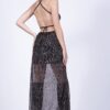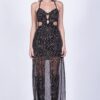 Vestido largo elastizado, confeccionado en tul con lycra, estampado con un diseño exclusivo para ona saez.
