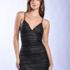 Vestido escote en v, confeccionado en tejido con lurex elastizado, combinación que asegura un ajuste ceñido y flexible.