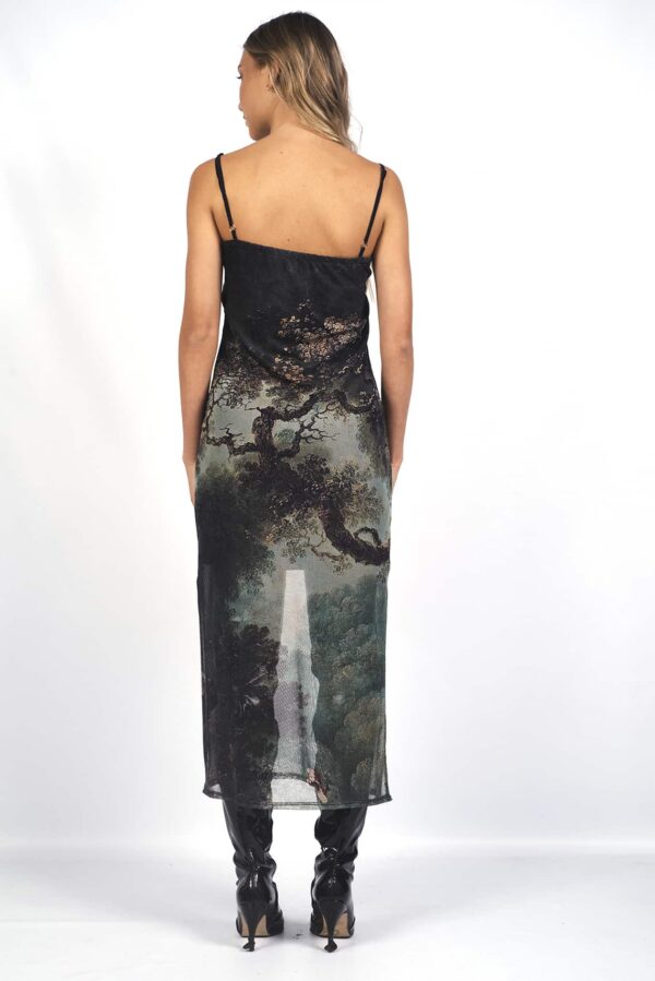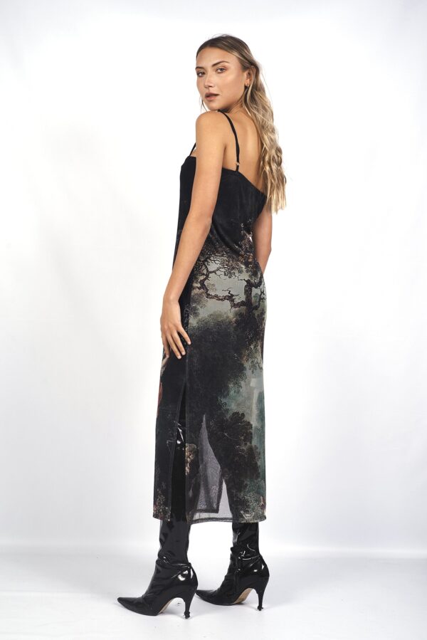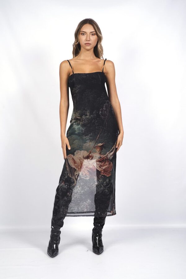 Vestido midi, escote recto, confeccionado en tull con lycra con un diseño exclusivo para ona saez.